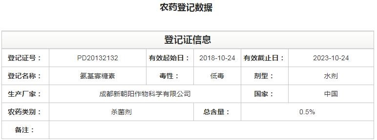 據(jù)了解,截止2018年12月,氨基寡糖素在中國(guó)農(nóng)藥信息網(wǎng)登記信息共計(jì)77條,有效成分含量從0.5%-5%不等,主要以殺菌劑為主。而目前國(guó)內(nèi)將氨基寡糖素定位在防治根結(jié)線蟲(chóng)上的僅有兩家企業(yè),最早登記的是成都新朝陽(yáng)作物科學(xué)有限公司。新朝陽(yáng)0.5%氨基寡糖素水劑(茛互)是國(guó)內(nèi)第一個(gè)生物源根結(jié)線蟲(chóng)防治合劑。
